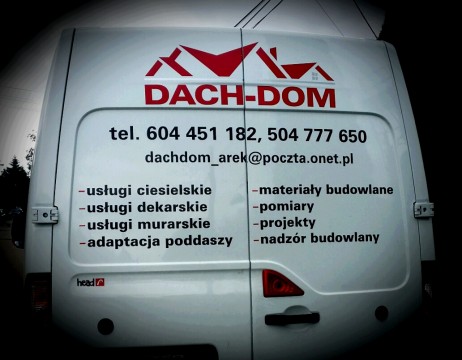 Firma wykonuje montaż pokryć dachowych, a także świadczy usługi ciesielsko-dekarskie, murowanie, adaptację poddaszy, pomiary, projekty, nadzór budowlany.